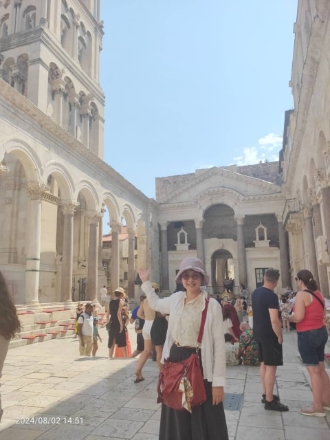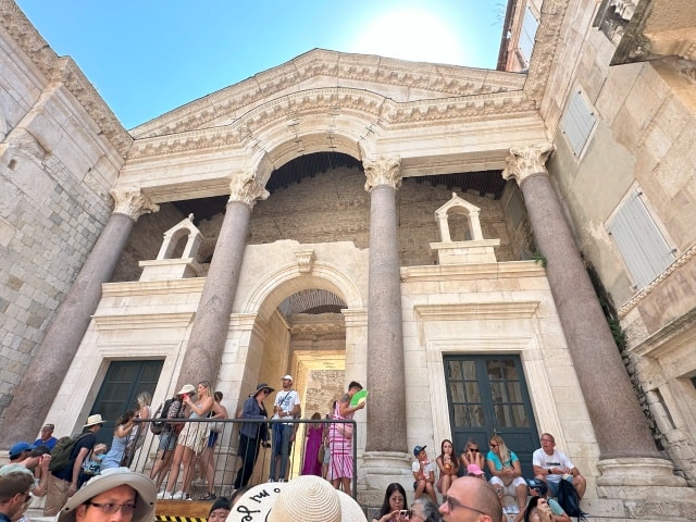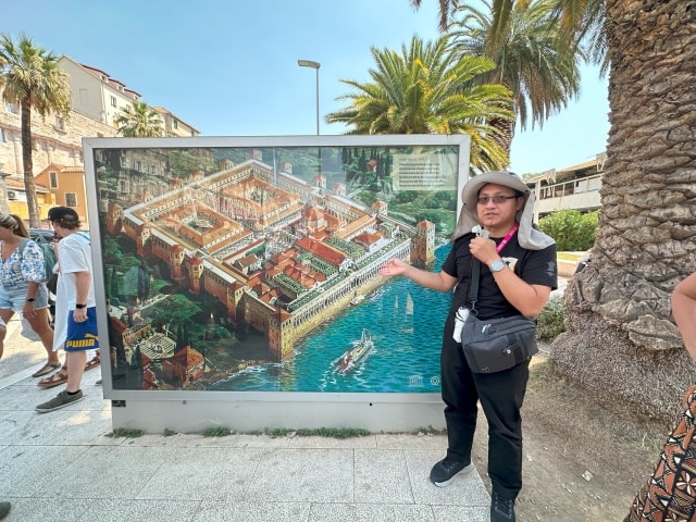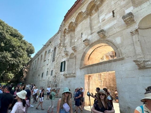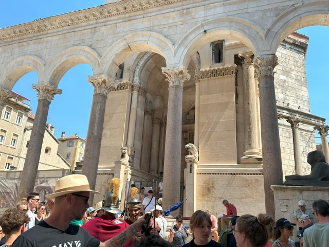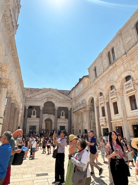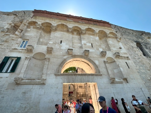 我們進去戴克里先宮參觀。戴克里先宮,是羅馬帝國時期的宮殿,約建於公元 295 年—公元 305年,羅馬皇帝戴克里先退位後即居於此,是一座宏大壯麗的海濱堡壘和豪華巨型鄉間別墅。