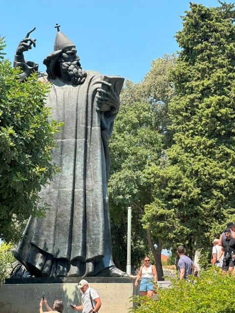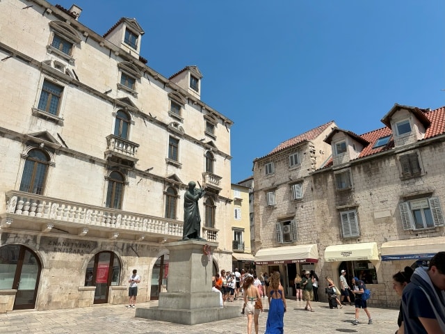 從皇宮北邊的金門一出去,便可以看到一座高聳的雕像,這位是當時10世紀時,克羅埃西亞的教皇寧斯基(Grgur Ninski),寧斯基勇敢的挑戰了當時羅馬統治時期的羅馬主教,為克羅埃西亞人民爭取以斯拉夫語及文字進行宗教彌撒,更被稱為「克羅埃西亞之父」。